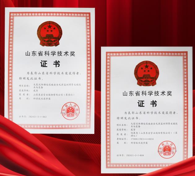由山東省科學(xué)院激光研究所、中國石油化工股份有限公司青島安全工程研究院、山東東宏管業(yè)股份有限公司、山東微感光電子有限公司、濟(jì)寧四和供熱有限公司共同完成的“大型流體儲運(yùn)設(shè)施安全無源監(jiān)測預(yù)警關(guān)鍵技術(shù)與裝備”項(xiàng)目榮獲山東省科學(xué)技術(shù)獎二等獎,公司排名第三位??偛媚叻顖蜃鳛轫?xiàng)目主要完成人受到山東省人民政府表彰。
