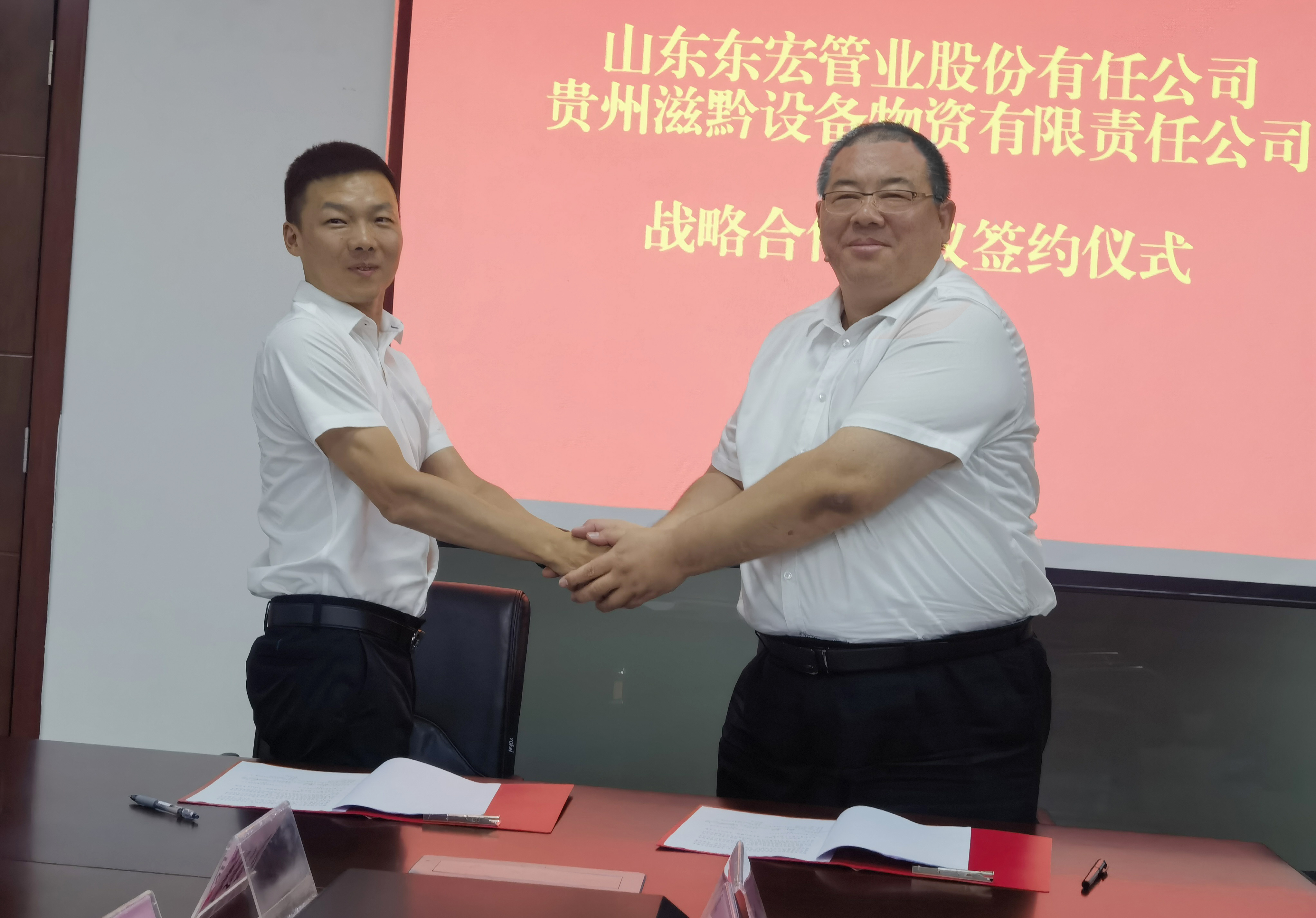 隨后,雙方針對戰(zhàn)略合作、投資建廠以及后期多元化發(fā)展等進(jìn)行了深度探討,貴州水投集團(tuán)滋黔物資公司副總經(jīng)理郭毅與總裁倪奉堯代表雙方企業(yè)簽訂戰(zhàn)略合作協(xié)議。